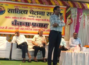 गाजीपुर, जंगीपुर। साहित्य चेतना समाज के तत्वावधान में आयोजित “चेतना-प्रवाह” कार्यक्रम के अंतर्गत एक भावपूर्ण काव्य गोष्ठी का आयोजन रामरती मैरेज हॉल में हुआ। कार्यक्रम की अध्यक्षता डा. हरिश्चंद्र सिंह कुशवाहा ने की जबकि संचालन सुपरिचित नवगीतकार डा. अक्षय पाण्डेय ने किया।